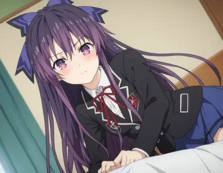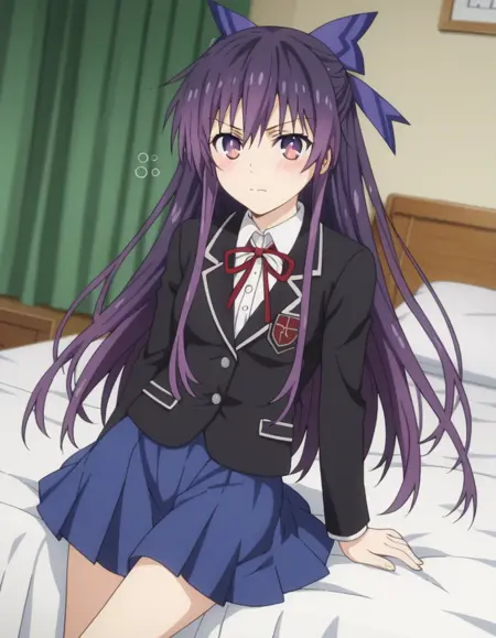 tooka yatogami, 머리 리본, 보라색 눈, 보라색 머리, 긴 머리, 리본,
