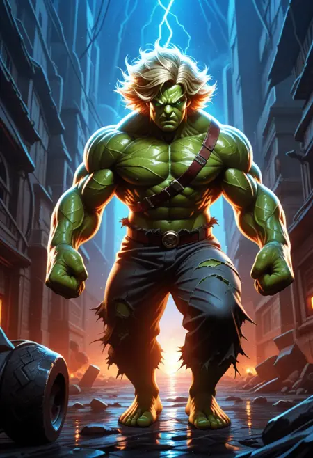 이 LoRA는 마블 캐릭터 헐크의 스타일로 이미지를 생성하는 데 도움을 주기 위해 설계되었습니다.