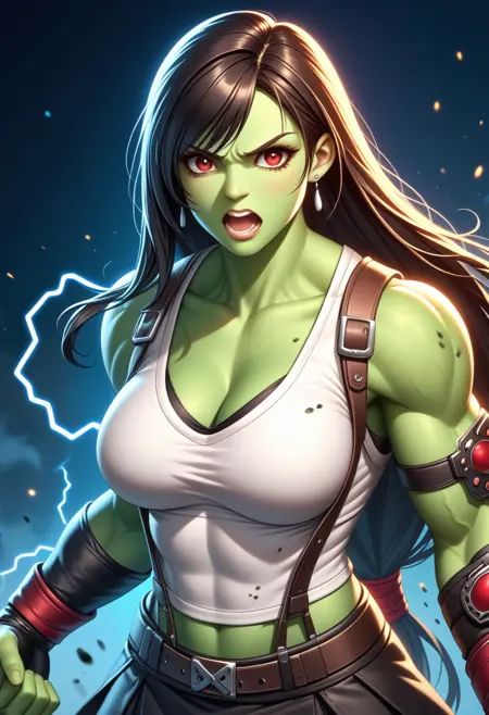 "HulkRay, (masterpiece, best quality:1.2), amazing quality, very aesthetic, 32k, absurdres, newest, scenery, 1girl, princess_zelda, hulking out, angry, furious, rage, screaming, roaring, yelling, glowing light particles, depth of field"