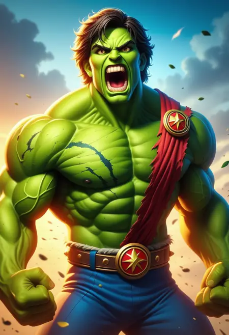 This lora is designed to assist in creating images in the style reminiscent of the Marvel character The Hulk