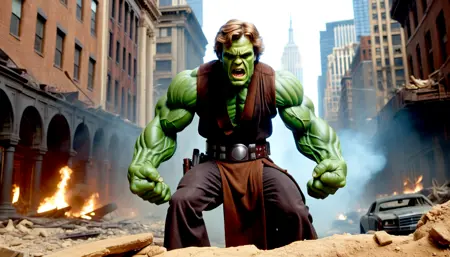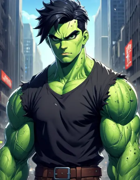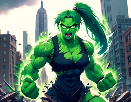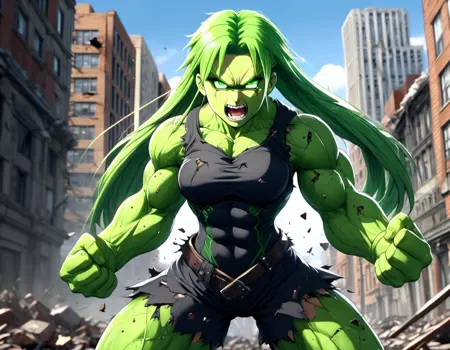 このLoRAは、マーベルのキャラクター「ハルク」を彷彿とさせるスタイルの画像作成を支援するように設計されています。