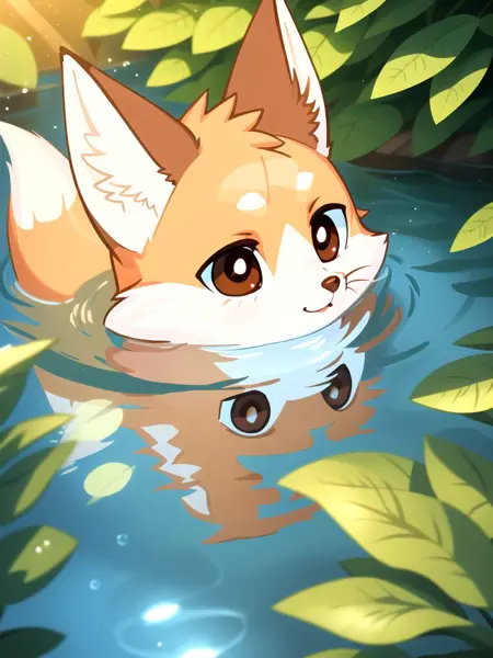 Promt: solo,animal_ear_fluff, upper body, tail,sunlight, tree, from below, fox tail, paw, full body lora:Pappy\_v1\_XL:0.8