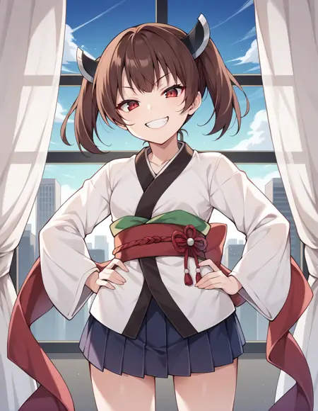 触发词:touhoku kiritan, 1girl, 棕色头发, 短发, 短双马尾, 红眼睛, 头饰