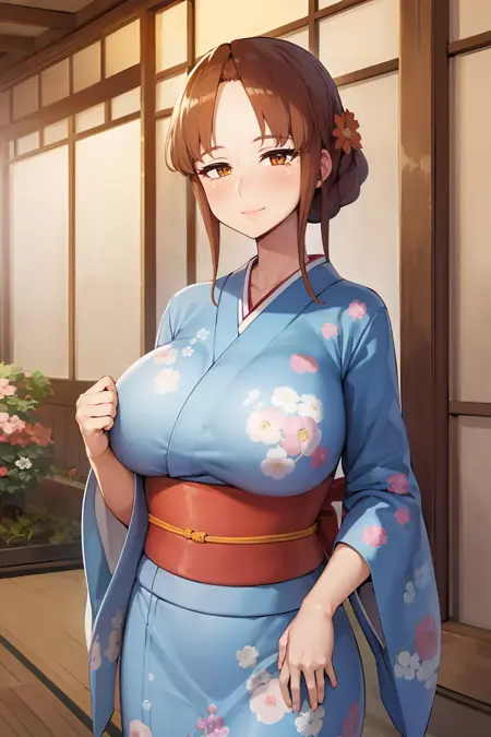 hilda-npc, brown hair, braid, brown eyes, mature female, (large breasts:1.2), (mole under eye:0.6), (sidelocks)