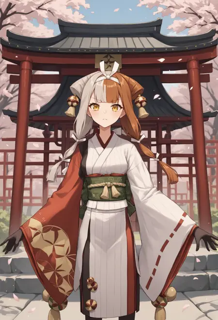 Miko: japanese clothes, miko, gloves, wide sleeves, bell