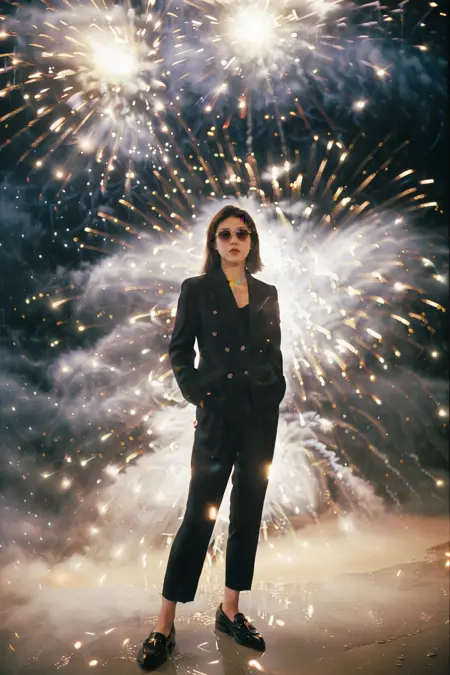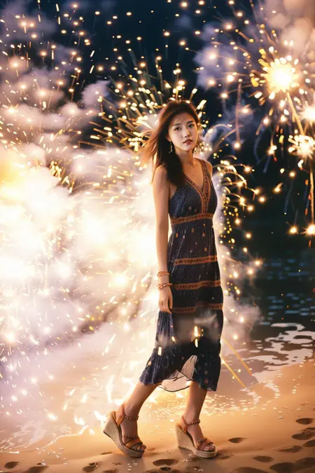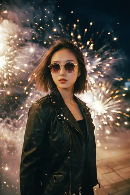 触发词:火、烟花、夜晚。请注意,建议避免在提示词中描述背景环境,以免影响效果。