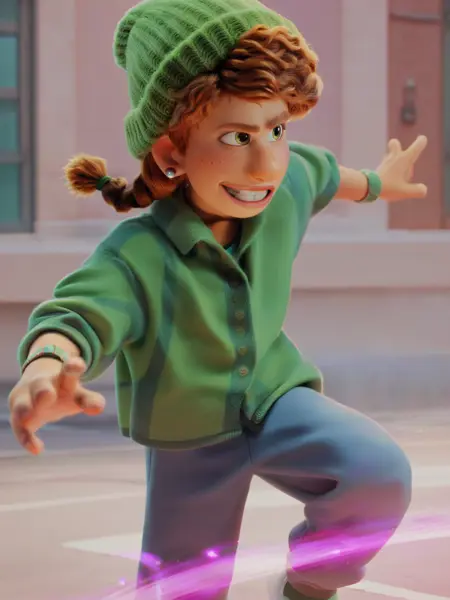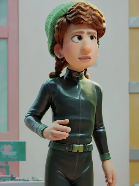Recommend prompt: "m_m, 1girl, green eyes, ginger hair, braids hair, fur hat, earrings"
