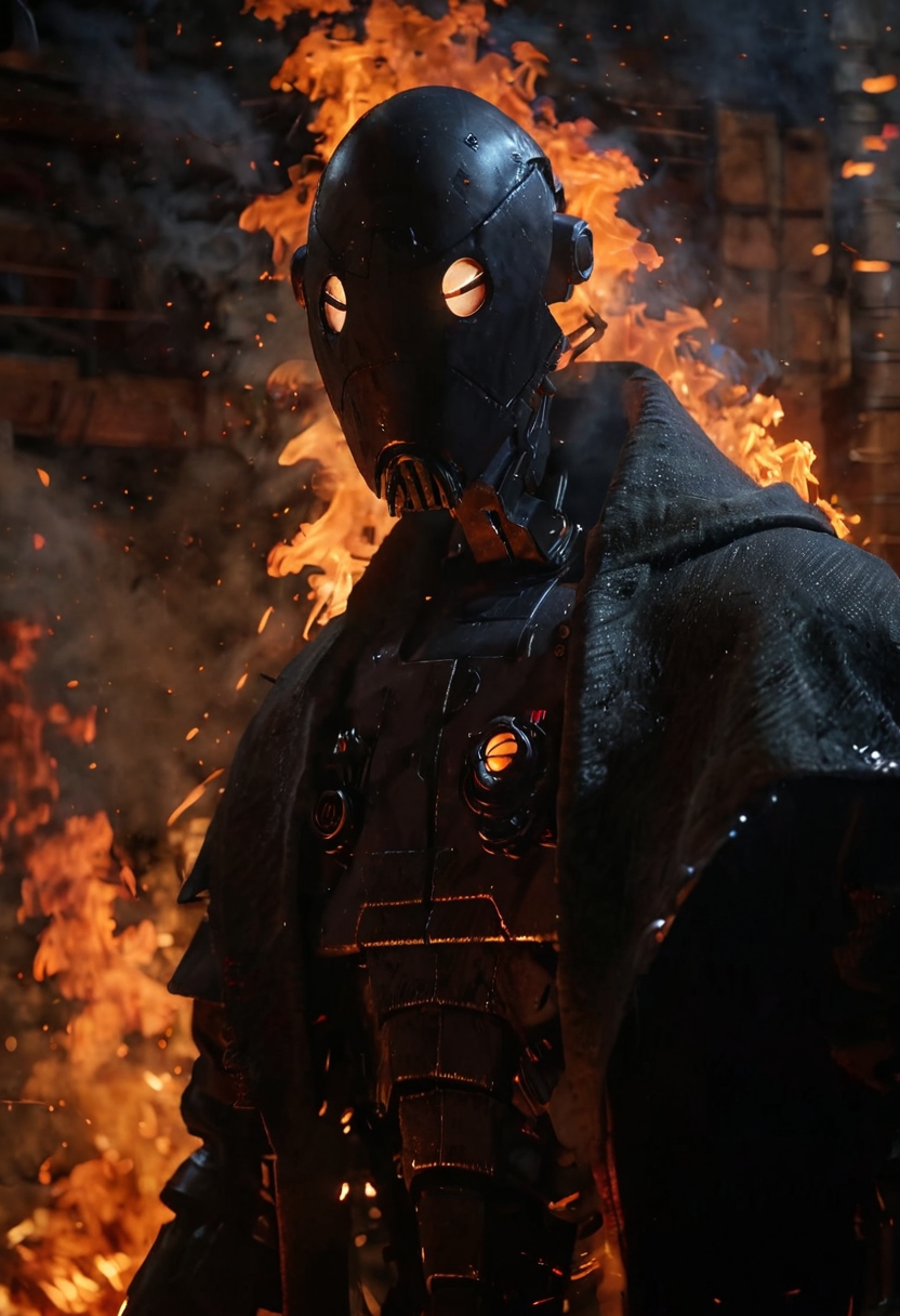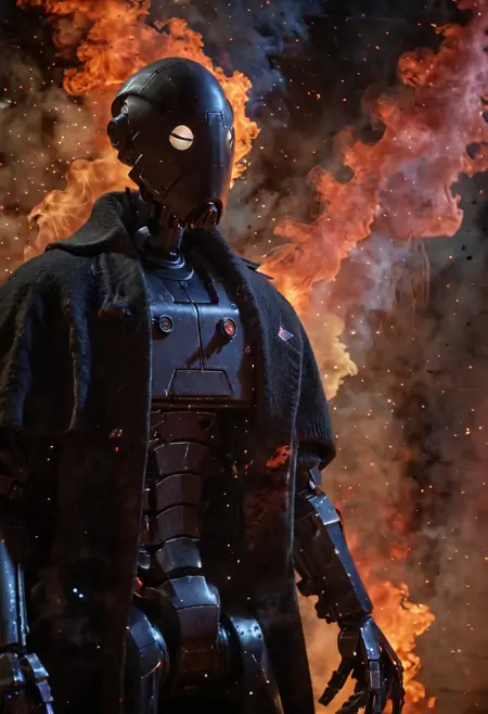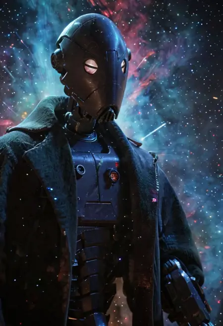 对这个结果非常满意。如果图像没有生成斗篷,尝试用类似的词语更加强调它。在生成ND-5时,也尝试删除“命令机器人”这个词。