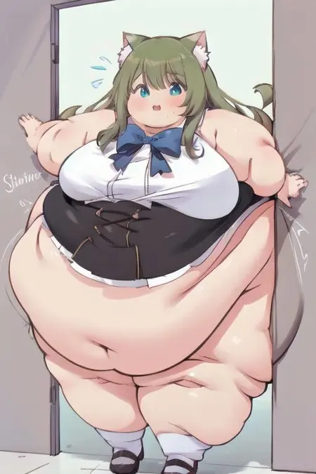 this lora is trained to produce anime style fat feederism art of fat girls stuck in doorways