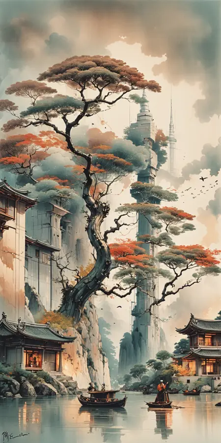 S1_Unclip 图生图生成的构图奇特的图片中,部分仍具艺术价值,但在后期修复中易出现色彩混乱与灰暗问题。使用Lora可在一定程度上改善,但不够便捷。现在使用IPAdapter style&Composition SDXL节点为这些杂乱图像增添优美色彩与新创意。