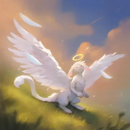 圣诞物种提示词:angel, halo, angel wings, white fur