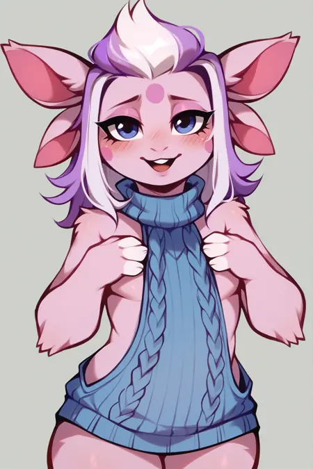 默认图像为卡通风格;若要获得其他风格,需添加提示词。若要更纤细的版本,请使用 thin body;若要实现人类化,请在负面提示中加入 snout。应有四只耳朵,但这一点尚不稳定,不过LoRA具有较高的灵活性。