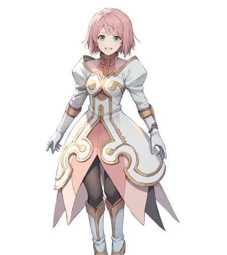 <lora:EstelliseSidosHeurassein:1>, Estellise Sidos Heurassein, 분홍색 머리, 단발, 녹색 눈, 중간 크기 가슴,