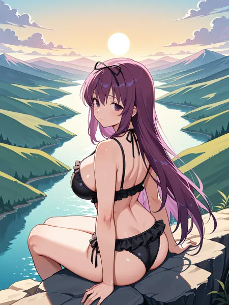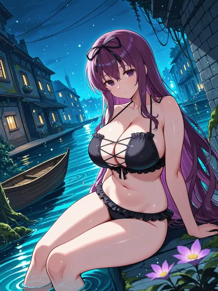 泳装的触发词为:"Murasaki_swimsuit, 黑色内衣, 黑色内裤, 花边比基尼, 花边胸罩, 花边内裤"。