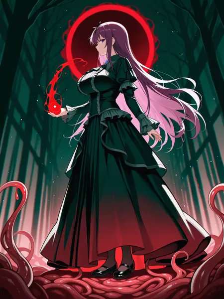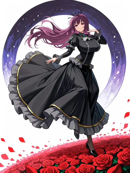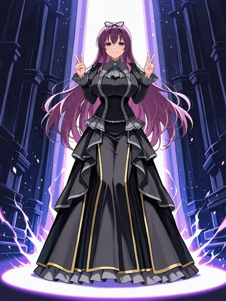LoRA的触发词为:"Murasaki_IL, 紫色眼睛, 紫色头发, 极长发, 发带, 大胸"。