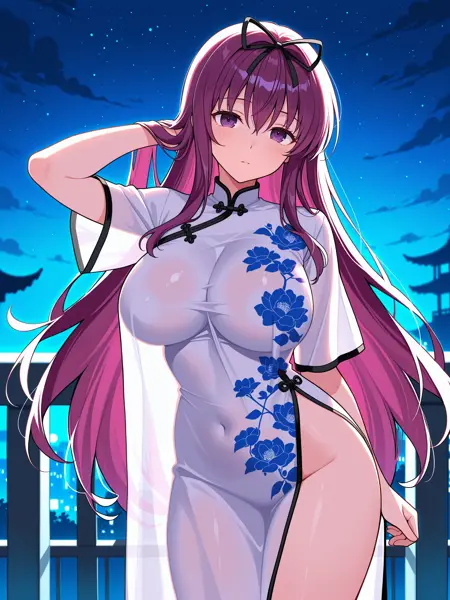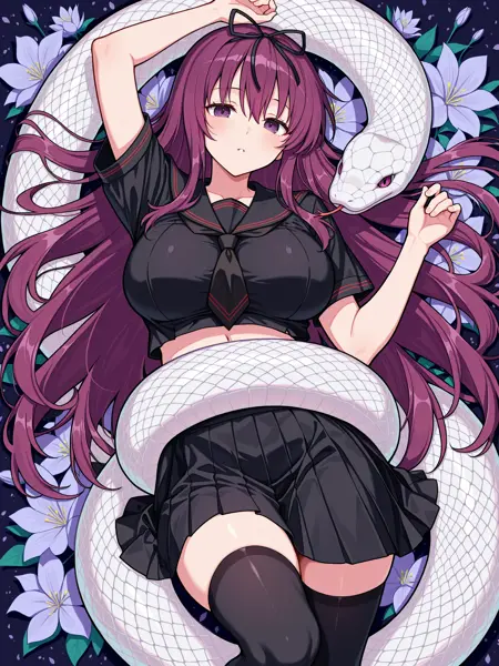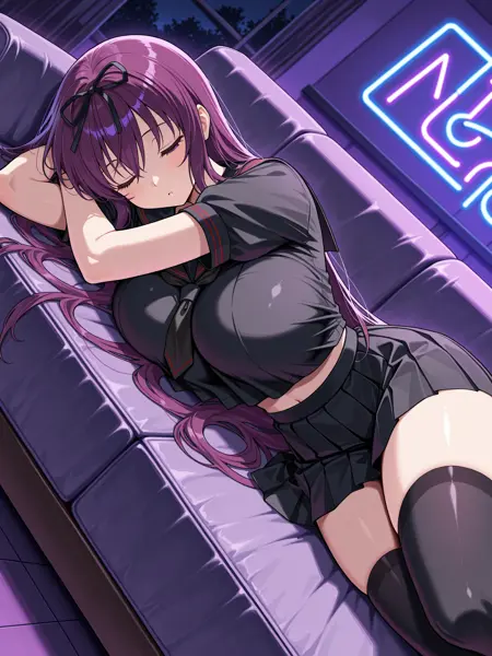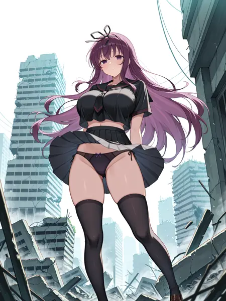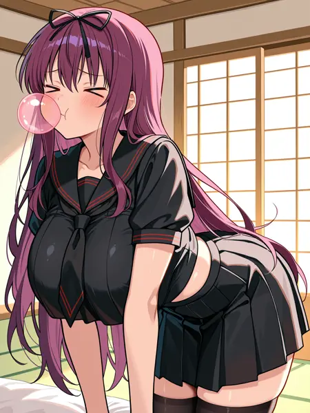 LoRA的触发词为:"Murasaki_XL, 紫色眼睛, 紫色头发, 极长发, 发带, 大胸"。