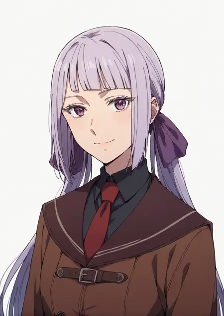 キーワード:フィロメラ、紫の目、紫の髪、低めのツインテール、髪リボン、ストレート前髪