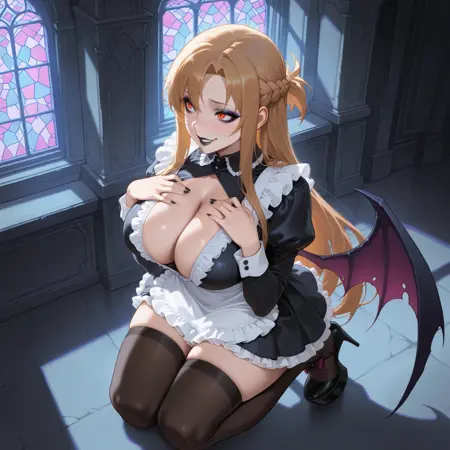プロンプト補助:プラットフォームヒール、足首カフス、クリノリン、タイツ、ゼッタイ、エプロン、髪飾りリボンなど