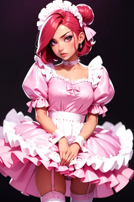 我的意思是,这真的是一件女仆装,搭配一条漂亮的蓬松短裙。我甚至都不确定这是不是我第一个这样的款式。它更偏向于“小女生/恋物”风格,但依然保留了女仆装的DNA。
