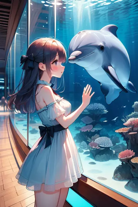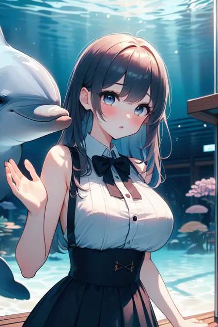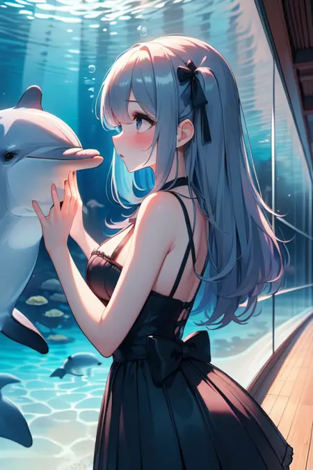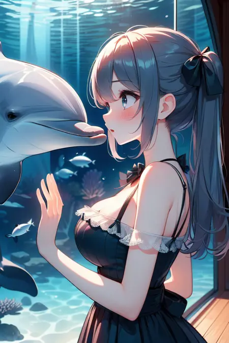 注意:鲨鱼作为示例图像更有意思,因此请提供触发词。其他关于海豚的提示,请参考图片。(Pony)