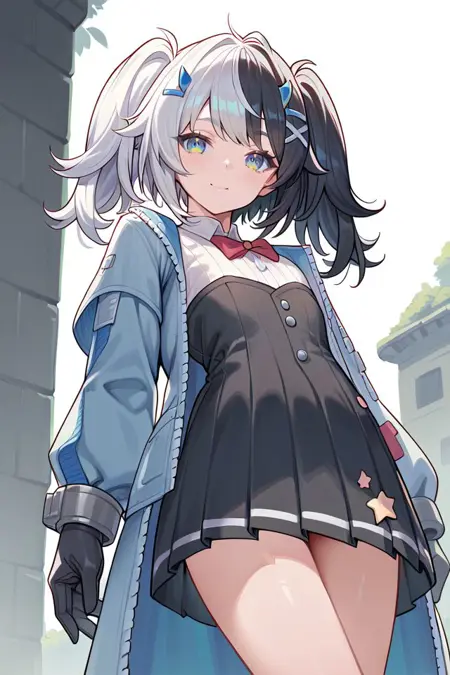 Snow Break의 Eatchel, PonyXL v6 버전의 만기 빛 의상 착용.