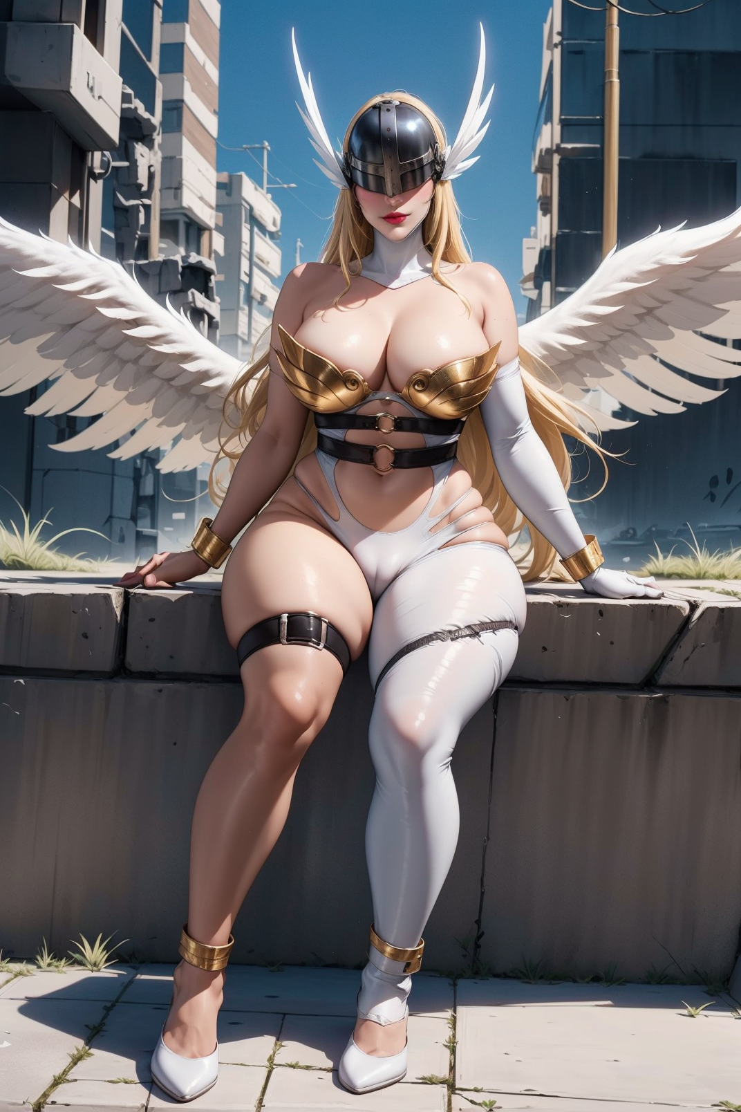 提示词:金色胸罩,腿部,(最佳品质,杰作:1.2),超精细,angelwomon,1个女孩,乳房,单人,长发,肚脐,金发,(多对翅膀),羽毛翅膀,大乳房,遮住眼睛,头盔,天使翅膀,O形环,手套,裸露肩膀,乳沟,头部翅膀,白色手套,白色翅膀,皮肤凹陷,脸红,肘部手套,腰带,微张的嘴唇,乳晕外露,面向观众,嘴唇,白色手套,锁骨,单侧肘套,户外,肚脐镂空,脱离领子,腹股沟,暴露服装,白色高跟鞋,丝袜