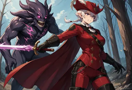 Here is my latest attempt at the Duelist's Attire. Brand-new dataset and brand-new training parameters. I have rebuilt this set entirely. It continues to be the most difficult to get right, probably because of the amount of detail that the set has.