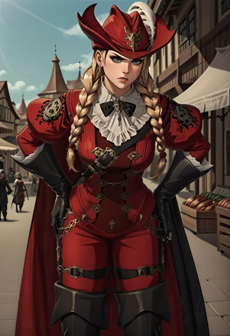 Here is my latest attempt at the Duelist's Attire. Brand-new dataset and brand-new training parameters. I have rebuilt this set entirely. It continues to be the most difficult to get right, probably because of the amount of detail that the set has.