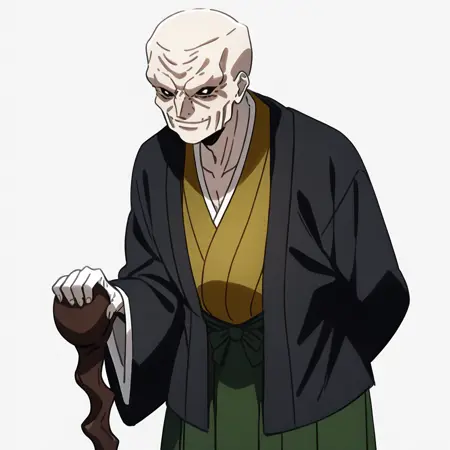 matou zouken, solo, 1boy, holding cane, kimono, haori, hakama skirt, tabi, sandals,