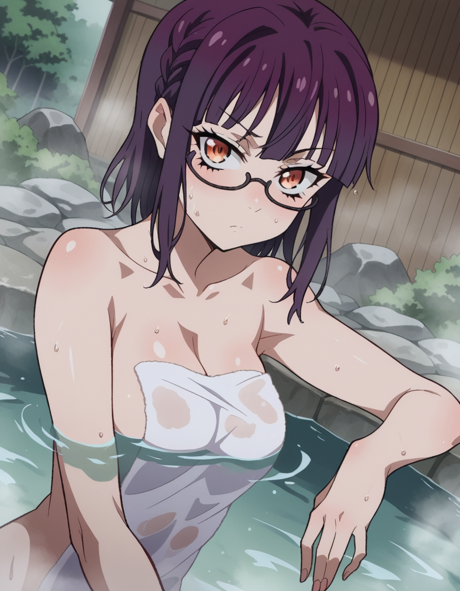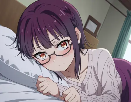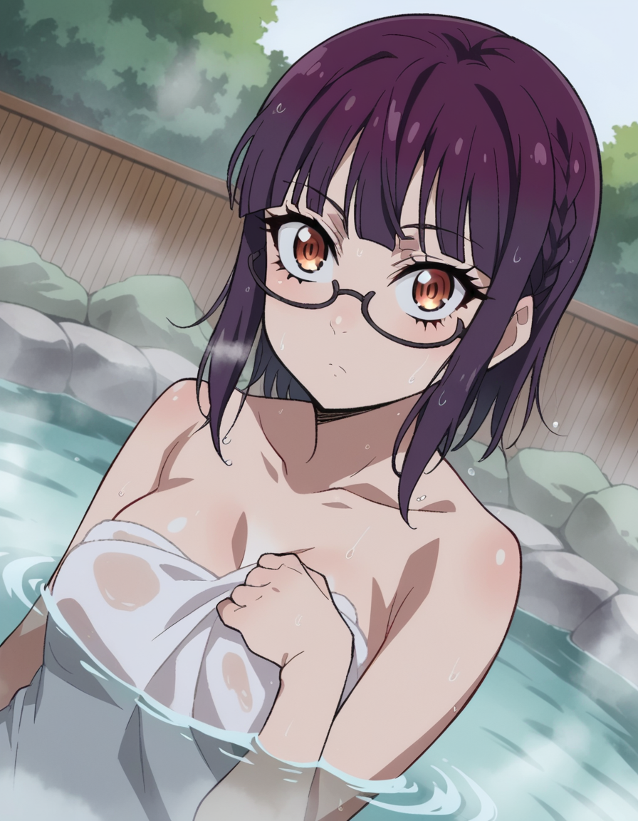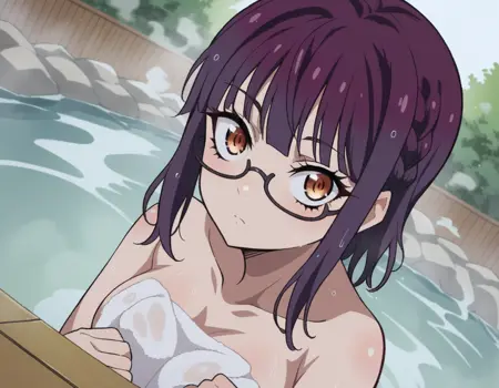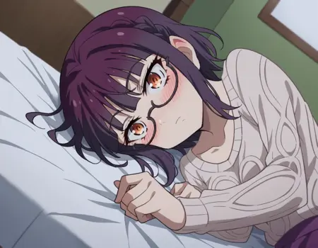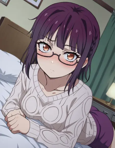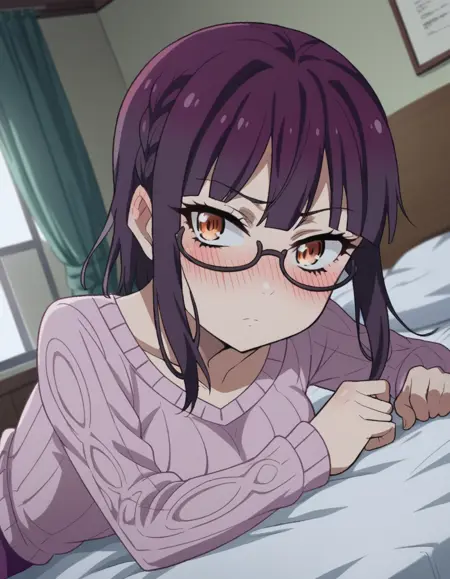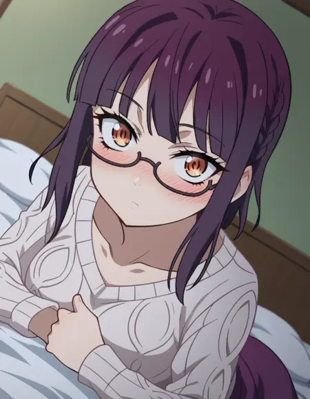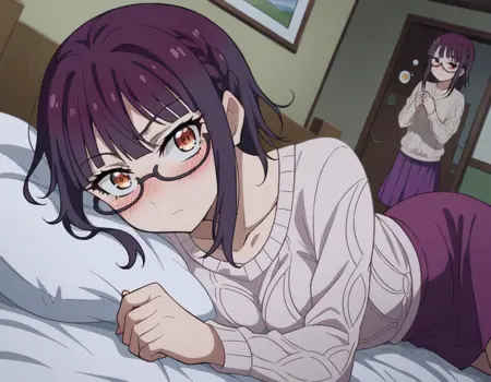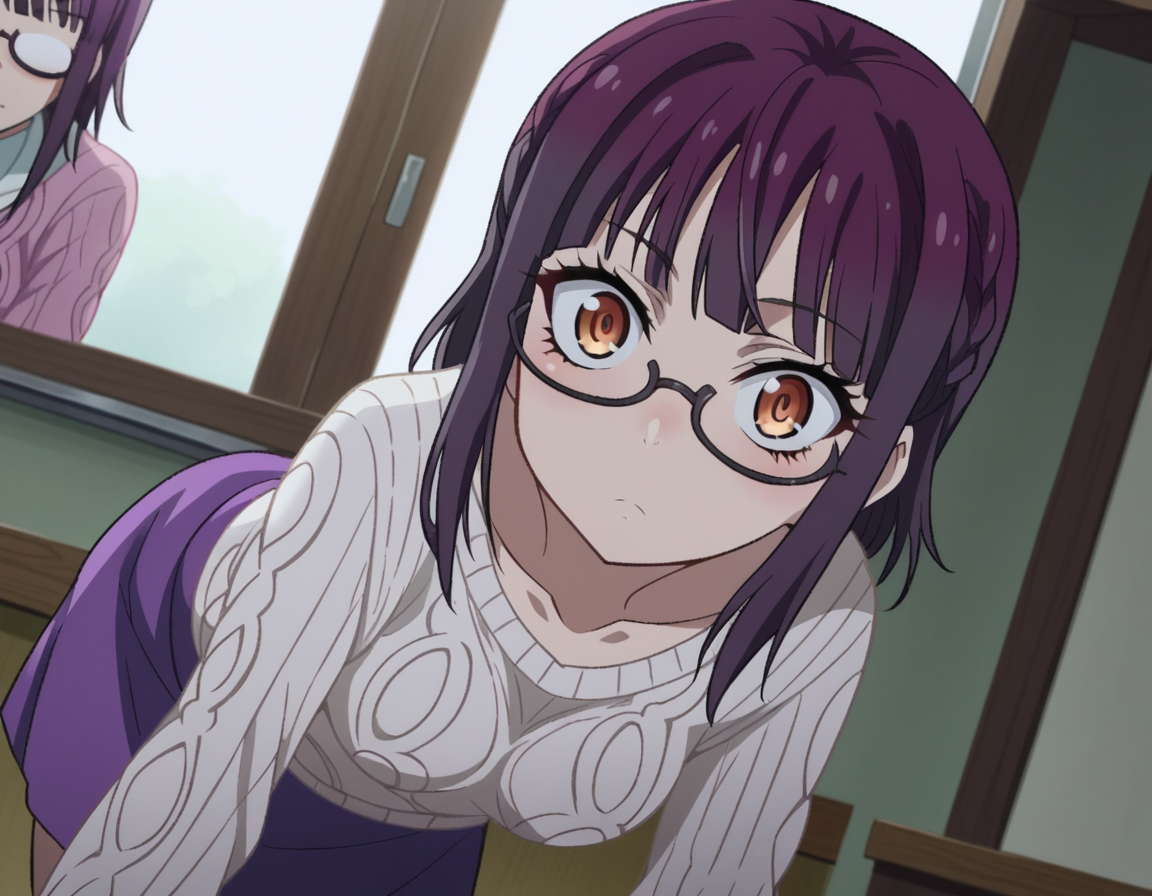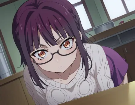 sumika fujimiya,棕色眼睛,紫色头发,发辫,眼镜,半框眼镜,下框眼镜,