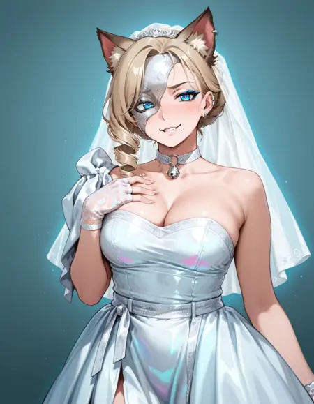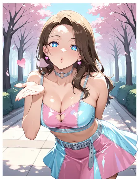 这是一件镶有银色亮片边饰的粉蓝色两件式PVC短上衣和迷你裙。色彩控制有些混乱,更适合在Illustrious中呈现。