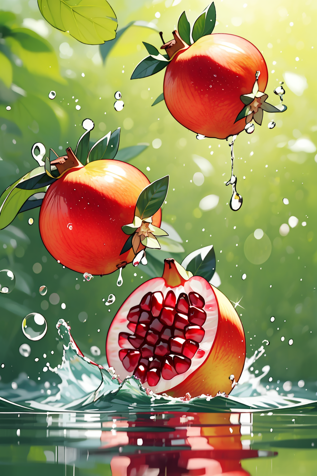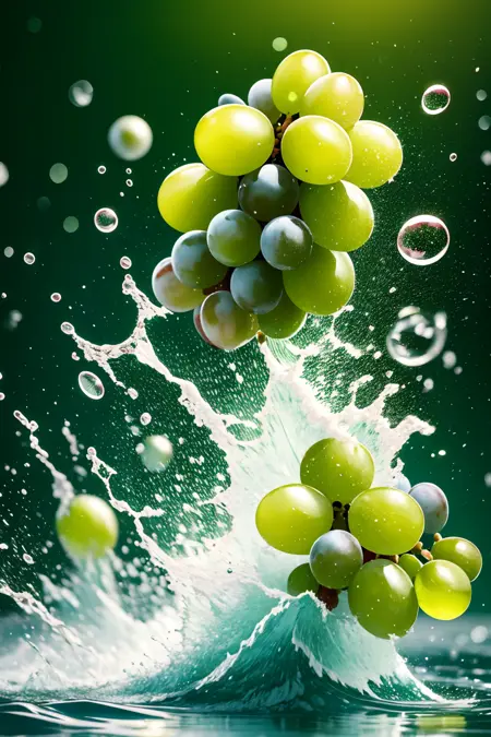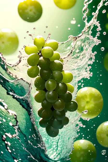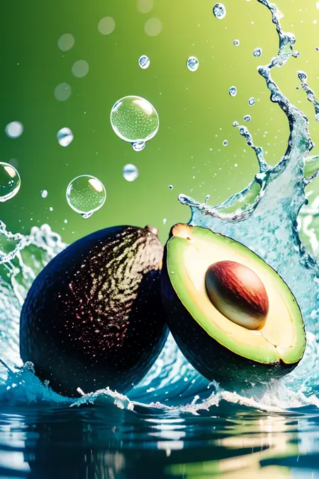 no humans,Photographic,<主体品类>, <主体>, water splashing, splashing, multiple others, realistic, Bubbles,blur, fruit poster,<lora:画威生鲜超市fruit poster_v1.5:0.85>,green background