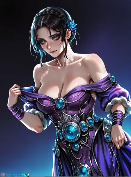 推奨重み: 0.75-1。基本的な衣装のトリガー: ファー trimming ドレス、ファーのマント、クラウン、ヘッドピース(Pony)