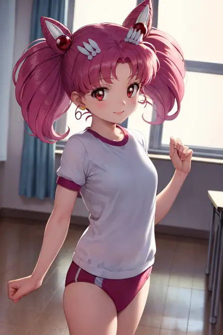 기본 프롬프트: 1girl, chibiusa, pink hair, twintails, cone hair bun, double bun, red eyes, earrings, hair ornament