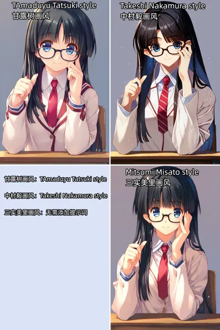 - 追加のプロンプトを指定しなければ、三実美里の画風を得られます。