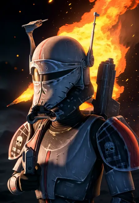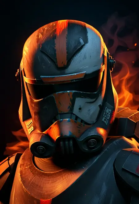 このモデルは、クローンフォース99のすべての顔とヘルメットを生成できます(一部のヘルメットは正しく生成するまでに時間がかかる場合があります)。推奨されるのは、私が提供した画像内のプロンプトを始めに使い、CFGを4、強度を1に設定することです。
