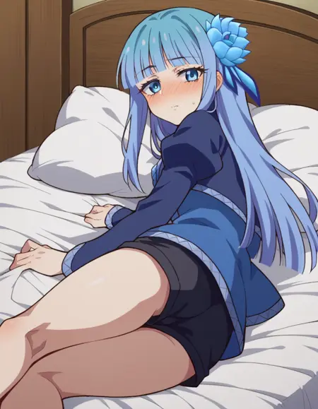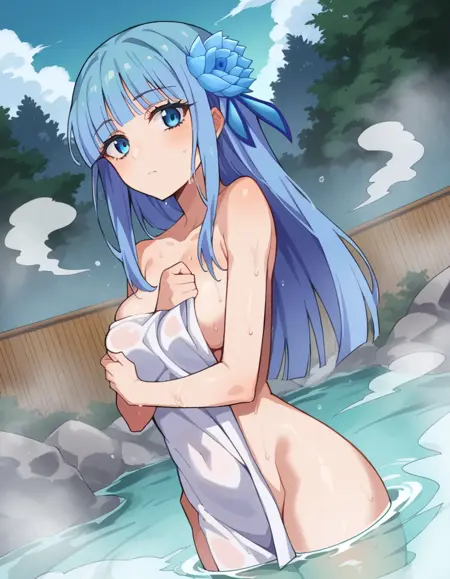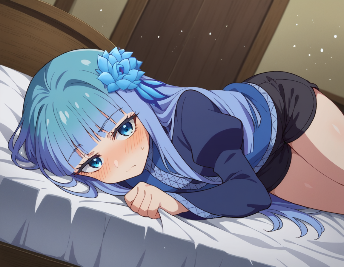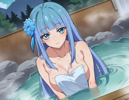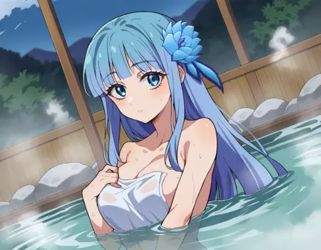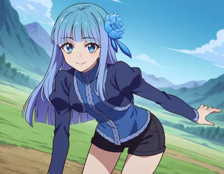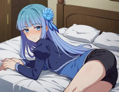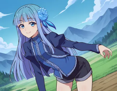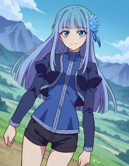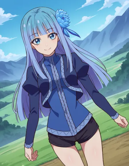 mabel rayveil,长发,刘海,蓝眼睛,发饰,蓝发,花朵,发上花朵,齐刘海,