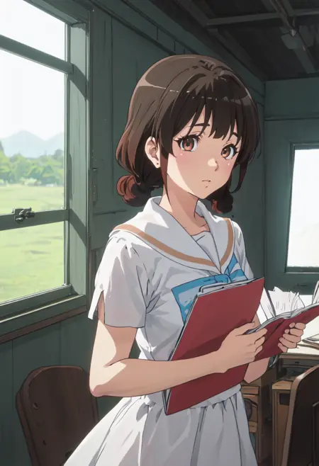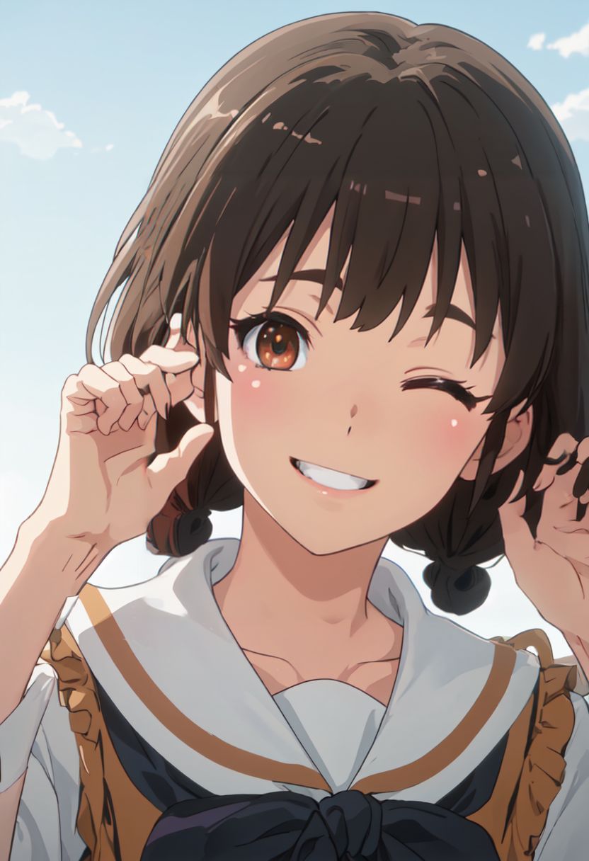- 精简后的角色标签为:棕色头发、棕色眼睛、短发。当角色的核心特征(如发色)不够稳定时,您可在提示词中添加这些标签。