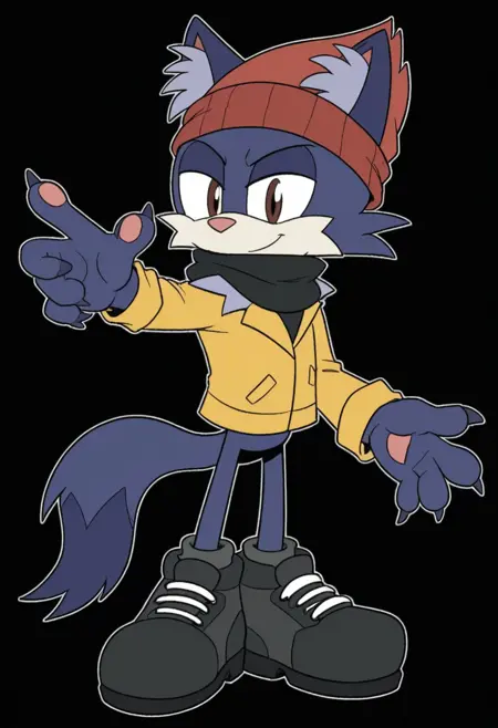 ソニック・ザ・ヘッジホッグIDWコミックスに登場するキャット・デュオ。気をつけて、この猫は見た目以上にやっかいだ。彼をソニックキャラらしく見せたい場合は、**「sonic (series)」**を使用してください。ただし、「sonic the hedgehog」を否定プロンプトとして追加してください。そうでないと、彼は不自然に見えます。
