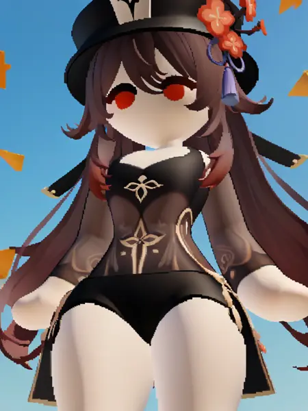 recommended Prompt: 3d, chibi, roblox, solid cirle eyes, no mouth, blush