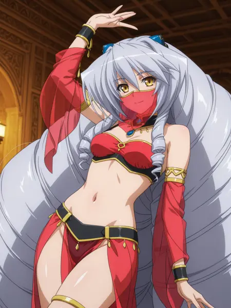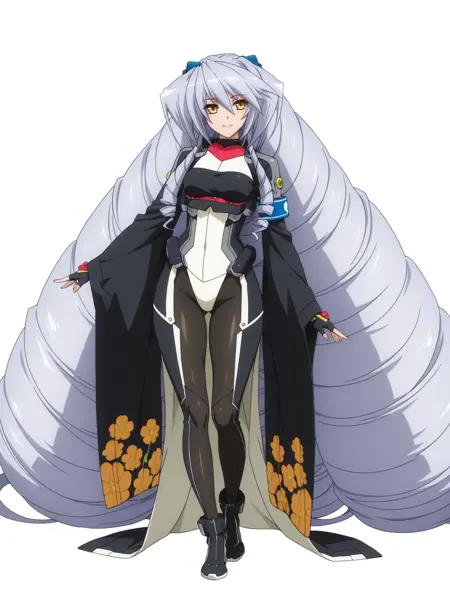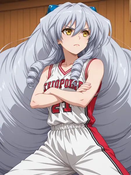 Nat4Mit0ts8da1ra,1girl,solo,drill hair,very long hair,absurdly long hair,yellow eyes,big hair,grey hair,small_breasts,