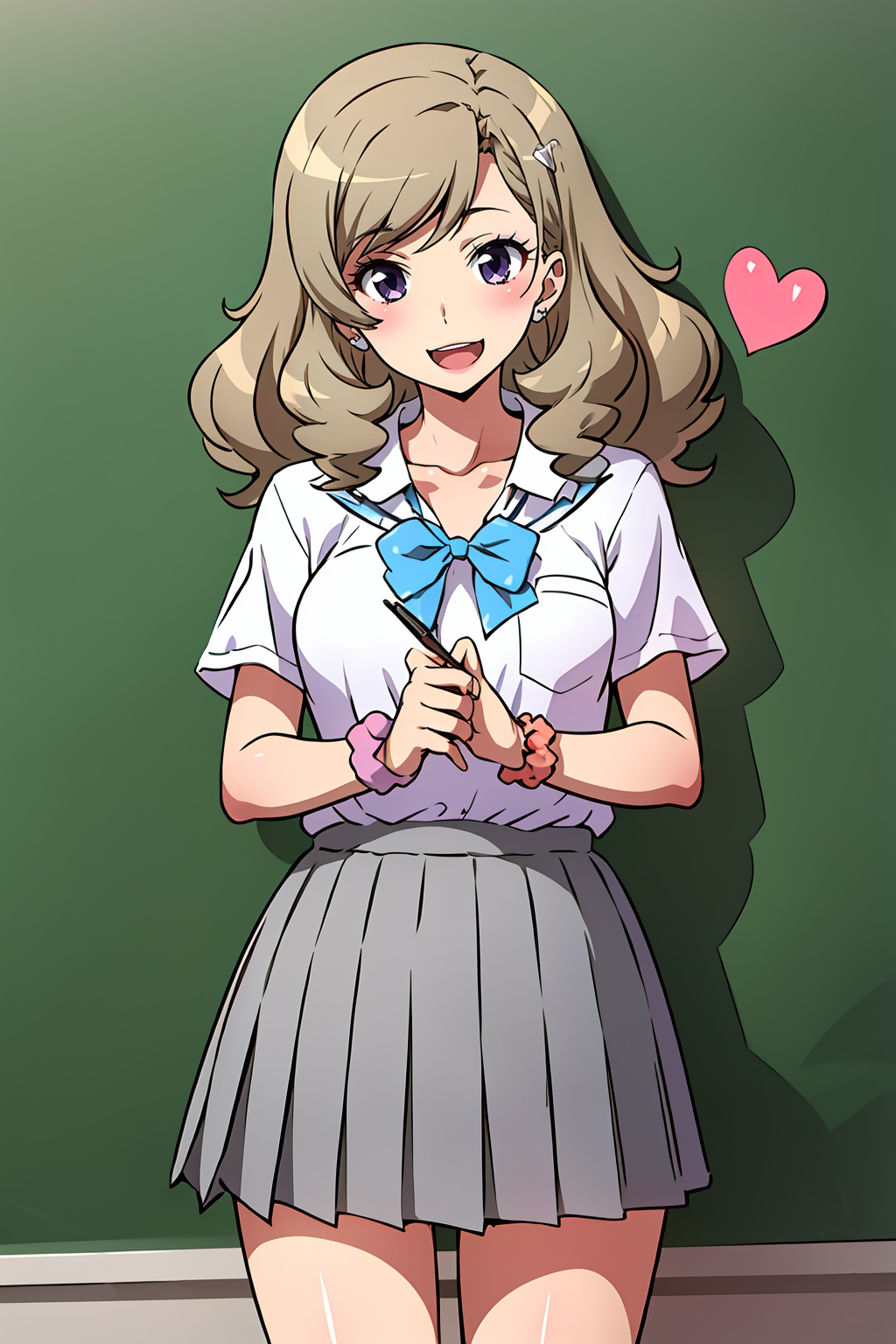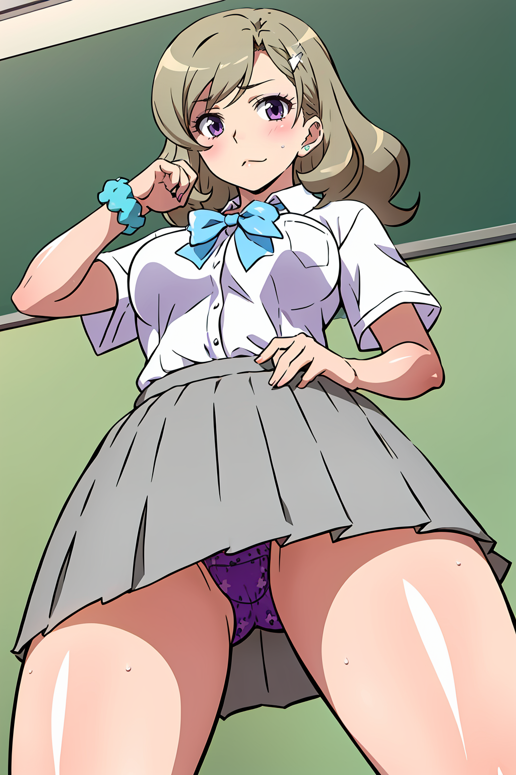 school uniform, gray_skirt, scrunchie <-- 衣装用