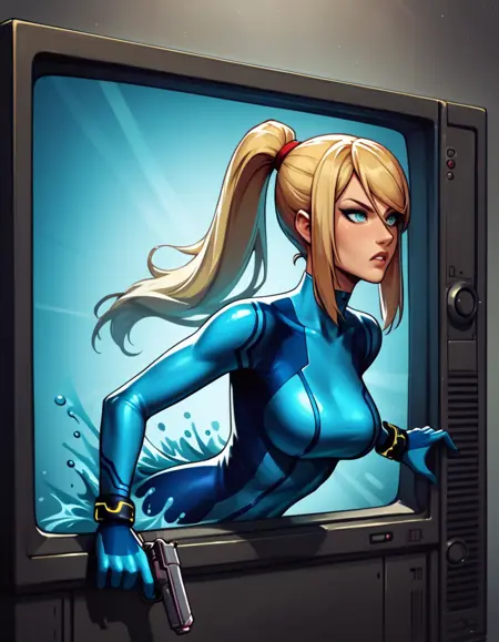 FOR COMING OUT TV UPPER BODY: throughscreen, 1girl, stuck, tv, upper body,