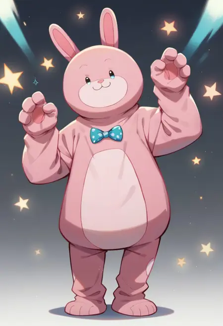 For his bunny costume: Lowering to 0.75~ strenght kind of does the trick to not make it generate a girl or a boy (First time I'm doing this thing, please bear with me!). Activation Tags: 1other, solo, no humans, pink bunny costume, animal costume, blue bow