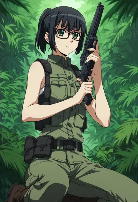 その他のプロンプト:黒髪、緑の目、眼鏡