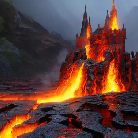 一种基于火山、熔岩怪物、流动熔岩、火山等图片训练的风格。
