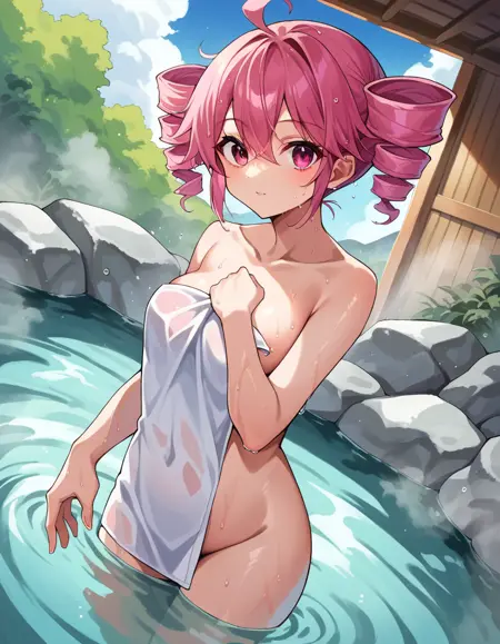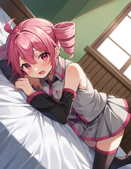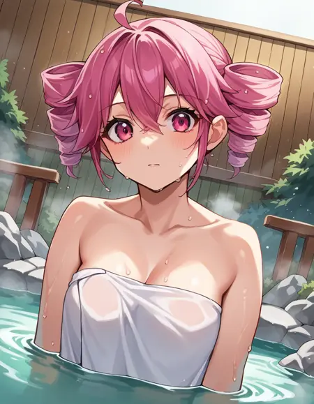 teto kasane, ahoge, pink eyes, drill hair, pink hair,