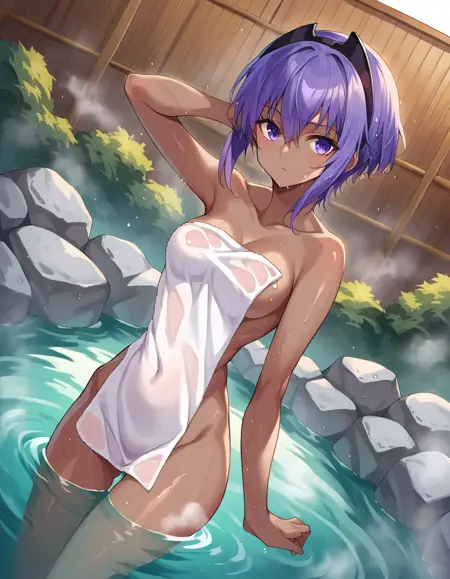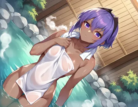 宁静,深色皮肤,深色皮肤女性,紫色眼睛,紫色头发,短发,