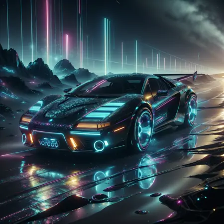 uv blacklights,sequined," to maximize the LoRA's effectsnote that the LoRA might hide other interesting behaviors when paired with other words, if you uncover any plz mask sure to share your findings in the comments