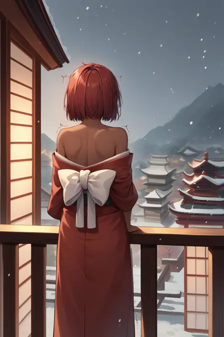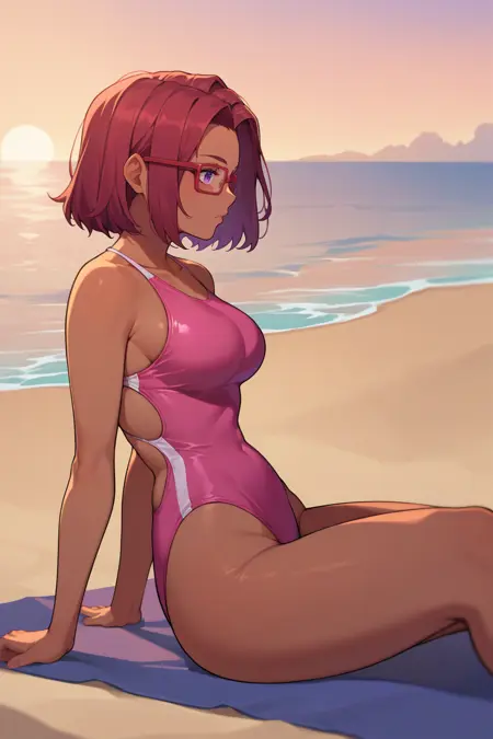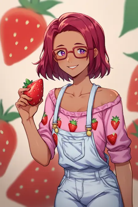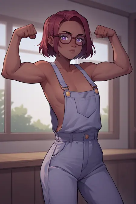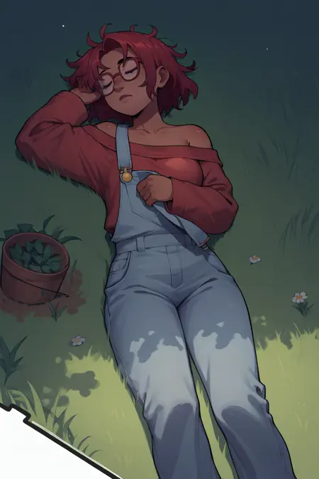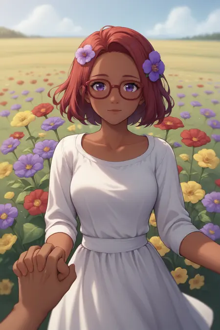 辅助提示词: "红发,深色皮肤,紫色眼睛" + "眼镜" + 根据模型不同可添加 "中长发"